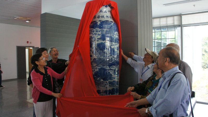 10月10日上午,学院一楼大厅气氛热烈,向校友颁发毕业五十周年荣誉证书暨农机制59级(64届)校友向学院赠送巨型景德镇瓷瓶仪式在这里热烈举行。浙江大学发展委员会副主席、浙江大学党委原副书记王玉芝,校发展联络办主任胡炜亲临仪式。王玉芝副主席代表学校对校友们毕业五十周年表示由衷的祝贺,对校友们五十年后重返母校表示热烈的欢迎,对校友们长期关心、支持学校发展表示衷心的感谢,对王明善校友及以王明善校友为会长的江西省浙江大学校友会长期以来支持母校发展和校友事业表示诚挚的感谢。仪式上,王玉芝副主席、胡炜主任分别向校友们颁发毕业五十周年荣誉证书及徽章,并与校友们一一合影留念。颁发荣誉证书后,农机制59级(64届)全体校友向学院赠送巨型景德镇瓷瓶一对。王玉芝副主席,胡炜主任,校友代表们及学院领导一起为巨型瓷瓶揭幕。仪式结束后,王玉芝副主席等有关领导还与全体校友们合影留念。
