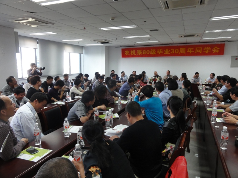 10月25日上午,学院报告厅座无虚席,农机系80级毕业30周年同学会正在这里热烈进行。60余位同学及部分当年任课老师在这里亲切相聚,共叙同学、师生情谊。吴士澌、奚文斌、胡惠珍、詹建斌、钱青及正在国内访问的美国华盛顿州立大学教授张勤等当年任课教师出席了同学会。