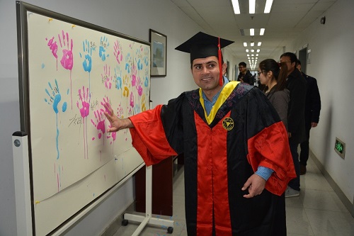 在毕业典礼正式开始以前,学院开展了两项活动:一是“我的研途秀”——优秀研究生成长经历,分“我的基本情况、研途成果秀”“研途故事秀”“研途精神瞬间剪影”四个部分,做成展板放在学院一楼进行了展示,希望优秀学生的精彩可以让更多的学子分享和示范!二是由研博会、研究生党总支开展的毕业纪念VCR制作,在一楼大屏幕播放,希望我们回味曾经一起挥洒的青春和欢乐!这是一份总结、一份分享,更是我们今后漫长的路上,温暖的回望与力量。