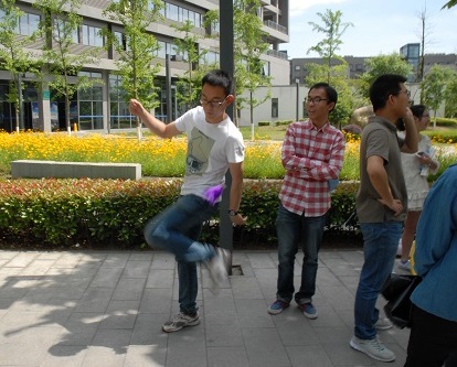 个人项目亦是精彩纷呈,包括“坚持就是胜利”、活力三项、折返袋鼠跳、摸石头过河以及乒乓九宫格。各个项目均受到了大家的热捧。尽管天气炎热,但远远挡不住大家的兴致与激情,大家都争分夺秒挑战比赛项目。在“坚持就是胜利”项目中,记录一次次被刷新,不服输的老师与同学再次迎接挑战,你一次,我一次,最终记录达到7分05秒。“踢毽子->呼啦圈->双人跳绳”项目则是女生们的强项,这充分展现出了她们身体的协调与灵活。在轻松愉悦又不乏激烈刺激的氛围中,这些小项目火热地进行着,老师们和同学们不仅身体得到锻炼,心情也得到了放松,抛开了生活、学习和工作的压力,散发着青春和活力。