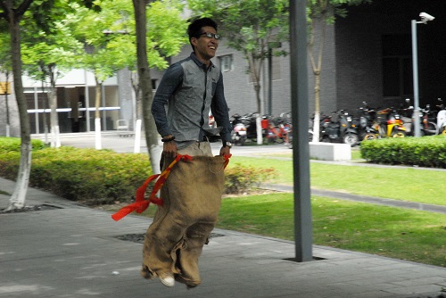 上午11点整,工作人员即展开了紧张而有序的会场布置工作。本次运动会共分为三块。第一部分为师生拔河比赛,参赛一方为学院老师组成的“全明星阵容”,而另一支队伍则由一群充满活力、昂扬斗志的学生组成。第二部分为集体项目,由5支来自不同党支部的师生共同组成的队伍同台竞技,集体项目包括“压吗”、“履带收获车”及“跳大绳”三大部分,根据三个项目总积分评定最终成绩。第三部分为更加诱人的个人项目,包括“踩石过河”、“坚持就是胜利”、“乒乓球九宫格”、“踢毽子->呼啦圈->双人跳绳”及“折返袋鼠跳”等,项目以游园会形式开展,广大师生可以现场报名。