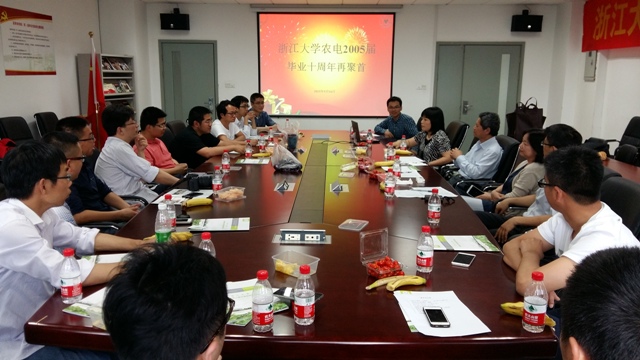 5月16日下午,学院农业电气化与自动化专业2005届全体17位校友与鲍一丹、陶雪梅、叶盛、叶尊忠等当年任课教师相聚在紫金港,共同庆祝、纪念毕业10周年。