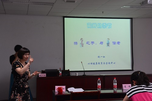 2015年6月11日下午,“花开的季节——执?之手,与?偕老”讲座在农生环D416举行,主题为改善和维持和异性之间的亲密关系,浙江大学心理健康与咨询中心副主任祝一虹老师担任主讲嘉宾。首先,党委副书记陈素珊老师对本讲座进行了简短的介绍,陈书记指出了研究生和本科生正确处理与异性之间关系的必要性,表达了她对本讲座的期许和祝愿。团委副书记夏平老师也参加了此次讲座并对大力支持此次活动。