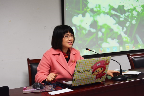 晚上7点大会正式开始,陈素珊老师第一个上场,进行了13级本科生就业动员。