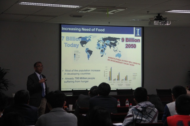 伊利诺大学(UIUC)教授、农学院副院长Prasanta Kalita作了《Postharvest Loss Prevention and the ADM Institute at Illinois》的报告,介绍了目前世界上农业产后损失的概况,重点介绍美国ADM产后减损研究所的主要研究活动。他在报告中指出:各国政府、机构和基金会都十分关注农业问题和粮食安全问题。他鼓励同学们要好好把握当下农业工程发展的大好机会,在农业工程学科的研究、创新领域大展身手。