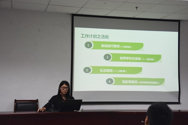 接下来是主席罗文昕学姐的分享,她通过自己的面试经历,讲述了天道酬勤的意义。