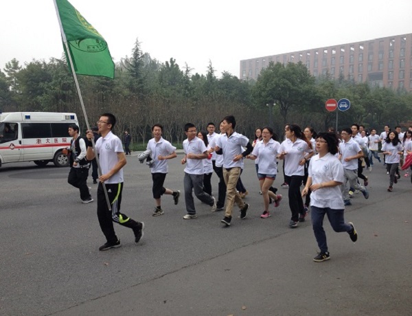 2015年10月23日上午八时,紫金港校区东田径场上彩旗猎猎,人头攒动,浙江大学2015年运动会隆重开幕。随后,bat365正版唯一官网师生在陈素珊老师的带领下伴随着铿锵的鼓声投入到了阳光健身长跑的活动中。