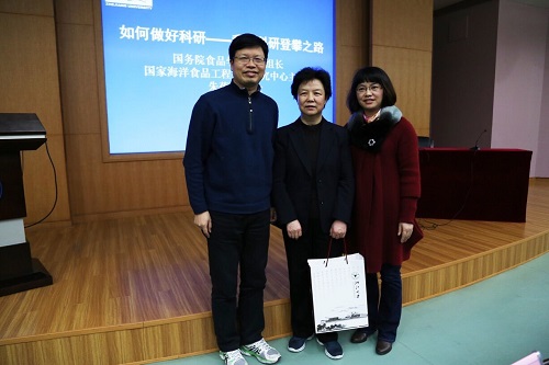报告会前,吴朝晖校长会见了朱蓓薇院士,并为朱蓓薇院士颁发求是大讲堂铭谢牌。 朱蓓薇院士专题报告主题为“勤奋求实,为我国科技事业发展努力工作”。民以食为天,食品行业与每个人都有着最紧密的联系。作为一个食品工作者,朱蓓薇院士的研究,聚焦三农问题,扛起国计民生的重任,促进我国食品工业和食品学科的发展,使更多的食品企业实现成果转化和技术创新,拉动海洋食品加工产业的发展,为社会谋利,为百姓造福。尽管成就突出,但朱蓓薇院士极为谦和,强调了团队的力量。“院士是一个优秀团队的代表,荣誉是属于团队的”。