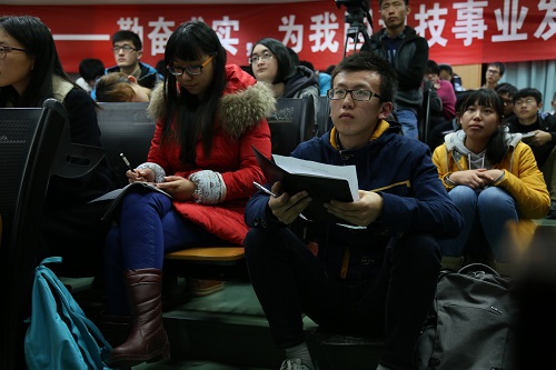 “在我们伟大祖国正处于走向创新型国家的过程中,时代和国家为青年人提供了很好的环境和机遇,你们应潜心钻研业务,踏实做好本职工作,感恩社会,勤奋求实,为我国科技事业的发展做贡献,为实现我们伟大的中国梦而努力践行!”