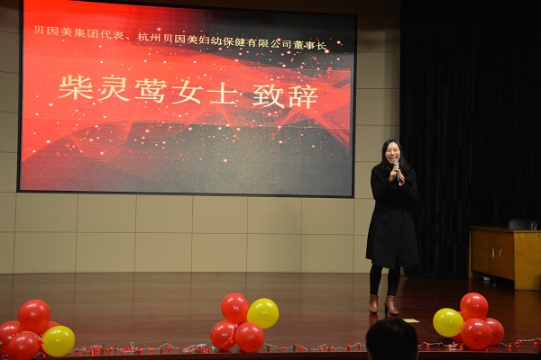 (赞助方贝因美集团代表、优秀校友柴灵莺学姐,分享与贝因美的精彩故事,启发同学)