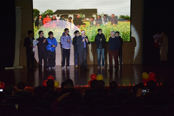 之后朱松明副院长致辞,为全场师生送上了晚会的第一个祝福。在致辞中,朱院长总结并肯定了2015年学院的工作成绩,并且对2016年学院做出殷切展望和期待。