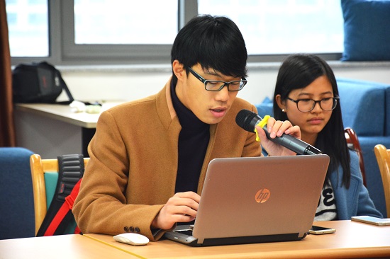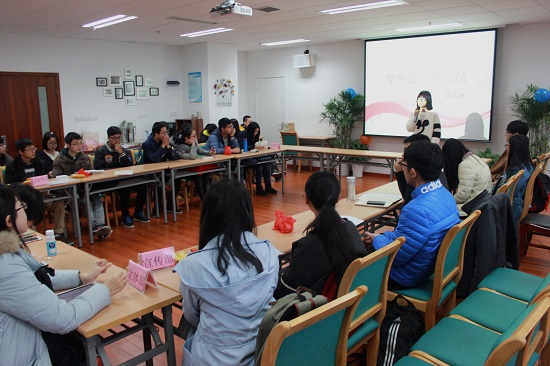 (图为学生会主席罗文昕总结秋冬学期工作)