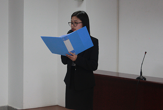 五分钟的休息过后,主持人宣布正式会议开始。一曲高昂的国歌后,学院党委副书记陈素珊老师为大会致开幕词。陈老师重申了我校校风、学校精神及学生会管理的八字方针等内容,并以平实的语言和贴近生活的事例表达了对青年学子能担大德的期待。陈老师特别指出,社会对于人才的认定总是以“德”为先,强调核心价值观乃一种大德,语重心长地对青年学子的公益情怀抱有期望。陈老师提到,为了担起历史重任,书写无愧时代的壮丽篇章,同学们应当不断努力。陈老师的一席话直指同学们的内心,赢得了热烈的掌声。