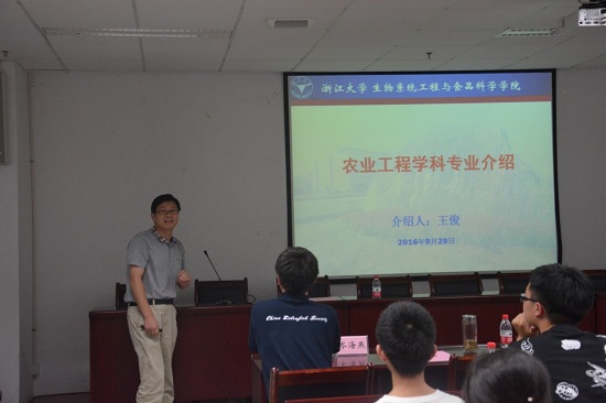 随后,生工系系主任王俊老师为大家介绍了农业工程专业。王老师从人才培养目标、专业背景简介、课程体系与师资队伍、培养模式及特色、代表性的研究领域、任务与工作等六个方面为同学们进行了讲解。王老师强调,农工专业对于物理和计算机的要求较高,培养的是全面的人才,这对于同学们今后的就业十分有利。