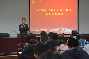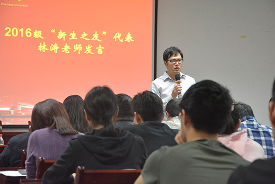 林涛老师作为新生之友也作为新生的学长给2016级本科生传递了自身的经验。第一是要转变一下思维,多接触人和事;第二是要多参加社团和学生组织;第三是要早一点思考自己以后的路。同时他也表示了对于同学们的欢迎,表示同学们有任何的困惑都可以求助于他。