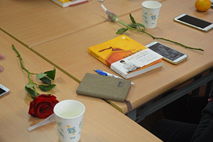外面虽寒风阵阵,但活动现场却暖意浓浓,学员们手拿鲜花,耳边萦绕着美妙的歌声,时而欢笑,时而交流,似乎有说不完的开心事。开始的互动环节:表演接龙,让现场变得轻松而充满活力,学员们的思维一下就发散开了。