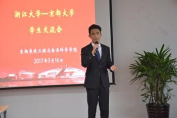 蒋焕煜教授代表学院对京都大学学生交流团的来访表示热忱欢迎,简要介绍浙大以及学院各方面情况,并为客人赠送浙大纪念品。近藤直教授介绍了京都大学学生交流团成员及本次来华交流项目的内容。