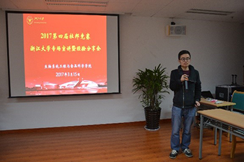 宣讲会开始前,朱加进老师代表学院致辞,表达了学院对杜邦食品竞赛的支持,并代表学院为两位嘉宾送上浙大纪念品。随后,中国食品学会但晓雅老师与杜邦的宗栋经理进行竞赛宣讲。但老师向同学们详细地介绍了往届杜邦竞赛的情况以及本届竞赛的规则、主题、评价标准、日程、奖励方法等基本信息,并且强调了在制作产品的过程中要注意参赛作品的保质期的问题,以免在邮寄的过程中作品被破坏从而影响了最终成绩。其后,宗栋经理简要介绍杜邦公司的发展情况和食品行业中的地位。他强调,“创新”一直是杜邦竞赛所追求的目标,而杜邦竞赛不同于其他食品竞赛之处在于同一个团队可以有两个创意,给大家更大的创新空间。