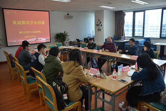 浙江大学120周年校庆和生工食品学院60周年院庆即将到来之际,92届郭亮校友于4月12日受邀返校座谈,与在校学生交流求学经历和职场感悟。学院院长朱松明老师、学院党委副书记陈素珊老师、生工系邵玉芳老师等出席,学生代表郭晗、邵雨舟、张梦垚、胡冬雯、戴理民、吴文豪、杨文涵等参与交流。