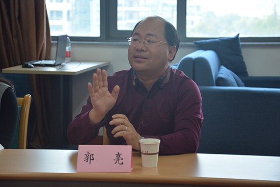 学院院长朱松明老师作为郭亮校友在学期间的专业教师,对郭亮校友的情况,作了简要介绍,并对郭亮校友百忙之中抽出时间返校与同学们交流表示感谢。