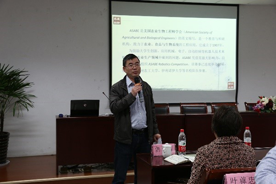 出席本次成立仪式的领导和老师有学院副院长蒋焕煜老师、党委副书记陈素珊老师、农业工程系副主任冯雷老师、学院教学科郭亚芳老师、学院团委副书记张云飞老师以及机器人竞赛相关的三位负责老师——俞永华老师、叶尊忠老师和崔笛老师。此外,参与活动的还有往届ASABE参赛选手代表、俱乐部第一届成员代表以及参加本届ASABE机器人竞赛选拔的农业工程专业同学。