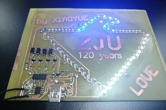 历时一个多星期的DIY彩灯设计,同学们体验了从电路设计、电路板腐蚀、贴片元件焊接以及到电路调试的整个过程,这是同学们交给课程的满意答卷,也是献给学校120周年生日最诚挚的礼物。