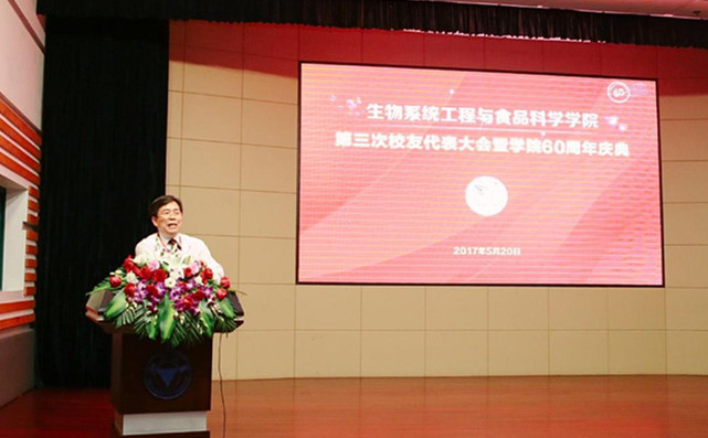 院庆大会在庄严的国歌声中拉开序幕。应义斌副校长致辞,应校长代表学校向生工食品学院全体师生和校友表示祝贺,他高度评价了学院从农业机械化专业成立到今天走过的六十年历程,对学院提出了殷切的期望。希望学院全体师生、校友以60周年院庆为起点,团结奋斗、不断进取,为学院发展,为学校“双一流”建设贡献力量!