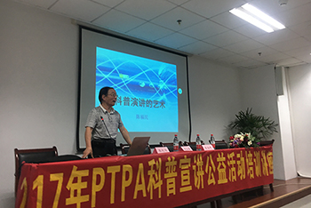 随后培训正式开始。市科协的资深培训老师陈福民首先介绍了科普演讲的艺术,就演讲主题的精心选定、科普演讲的方法要点、人文积淀、演讲的注意事项进行了全面而细致的讲解。