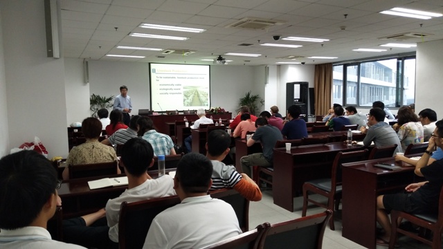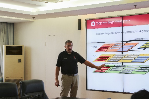 Scott Shearer教授、Yuanhui Zhang教授、Jiyoung Lee 副教授、Karen Mancl教授、Xinlei Wang教授、Lingying Zhao教授分别作了《Digital Agricultural for Sustainability数字农业可持续发展》、《An Environment-Enhancing Energy Paradigm --Hydrothermal Processing of Biowaste and Algae into Biofuels with Nutrient Reuse, Wastewater Treatment and Carbon Capture利用藻类生物燃料的营养再利用、污水处理和碳捕获等能源范例来优化环境》、《Microbes, Environments and Human Health微生物、环境和人体健康》、《Treatment of Food Processing Wastewater食品加工废水处理》、《Sustainable Environmental Management in the U.S. Livestock Industry美国畜牧业的可持续环境管理》、《Measurement, Modeling, and Mitigation of Air Pollutant Emissions from Agricultural Animal Feeding Operations畜牧养殖过程中空气污染物的检测、模拟与减排》的学术报告。学院院长朱松明教授及何勇教授、盛奎川教授、刘德钊研究员、韩志英副教授等就bat365正版唯一官网农业工程学科科学研究及在农业信息与物联网、农业生物环境等领域的研究情况进行报告及交流。