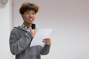 “老丁疯狂的青春,成功的事业,还有可爱的两个孩子,让我第一次体会到,原来我马上就会是一个需要承担家业事业的男人了,大学四年的沉淀是让我更加成熟的熔炉。”2016级结对寝室学生代表俞靖轩同学诚恳而风趣的发言引起了阵阵笑声,也为同学们带来了感动与思考。正如他说的,“我们的新生之友是一个走遍大江南北的男人,是一个富有热情指点江山的青年才俊,是一个学术能力受到业内高度肯定的导师,还是一个让我仰望的前辈。”新生之友会是我们大学路上重要的朋友与导师,因此,俞靖轩同学作为一名学长,恳切地希望新生能多主动一点,不要害羞,不要害怕,要多打一个电话,多发一个短信,多找我们可亲可敬可爱的新生之友们好好聊一聊。
