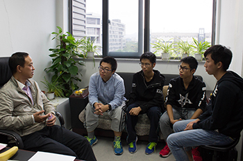 会后,新生之友们邀请结对寝室的同学到老师的办公室或实验室进行交流,师生一起聊聊家常,有的老师为同学的专业选择和人生规划出谋划策,有的老师介绍正在做的科研项目或竞赛项目,同学们认真倾听,获益良多。