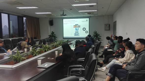交流中,Professor Francisco Goycoolea介绍了利兹大学各个研究所的设置情况,其所在学院的实验室及其主要研究领域与研究内容,并详细介绍了其在过去几年的研究重点。Francisco Goycoolea教授专长于生物聚合物科学和食品纳米生物技术,尤其在由天然聚合物即多糖和蛋白质(例如水凝胶,聚电解质复合物,胶体微粒和纳米粒子)衍生的软纳米结构生物材料等方面的研究,详细阐明了这些材料与哺乳动物和细菌细胞相互作用的机制及其对已知在生命网络的通讯(例如粘膜,上皮细胞,生物膜)中关键过程的影响。Brent Murray教授介绍了其在稳定的泡沫和乳液、蛋白质和多糖的微凝胶颗粒、生物复合物作为功能性食品成分的新型包装、乳化和控制释放等方面的研究情况。Dr .Elena Simone教授介绍了其在在线、原位分析药物和食品晶体的多晶型、成核和晶体生长,结合实验和模拟操作有效的控制晶体的大小、形状和多态性,探索新型非侵入式的技术保证食品安全。在介绍后的交流互动环节,几位教授与师生们就食品胶体、微乳化等方向的问题进行了热烈的讨论。