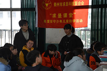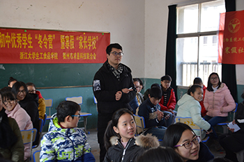 衢江莲花初中、龙游詹家小学是衢州市求是科技联合会的“求是课堂”公益活动的合作学校。衢州市求是科技联合会会长、浙江大学80级单建军校友带着热心校友全程陪同,单会长在两校的开营式上分别致辞,他动情地说,此次“冬令营”活动是联合会和浙大的在校生合作的成功硕果,是衢州市求是科技联合会“求是课堂”的系列活动之一,是浙大校友回馈地方、助力乡村发展的公益行动,是衢州浙大校友“情怀浙大 服务校友 助力衢州发展”理念的生动实践。