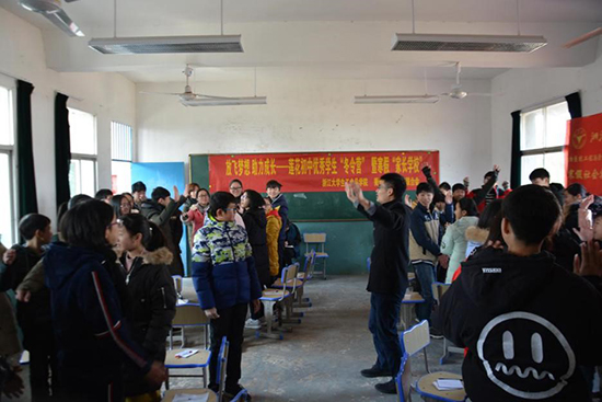 冬令营先后在莲花初中和詹家小学举行,浙大师生为乡村中小学生专门量身打造了自信心训练、口才与演讲、学习习惯培养、团队协作锤炼、理想信念塑造、国际视野开拓等模块课程,情景创设的模式,融入互动式、体验式、实践式、启发式教学;课程实践中,分团队进行教学内容的实践和演练,团队内部形成有效合作,团队之间构成充分竞争,激发团队成员的集体荣誉感,激励成员积极表现,全情投入;教学中,以大学生朋友带动中小学生朋友,主动分享,教学相长,相互激励,共同探索,共同成长。