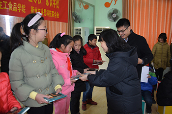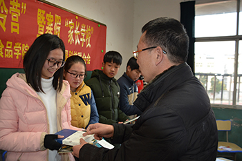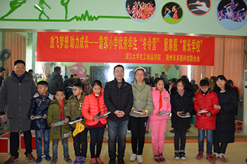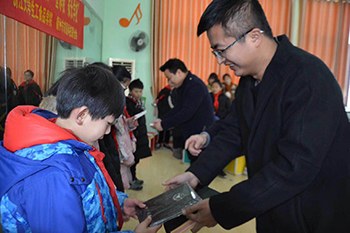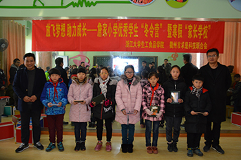 衢州市求是科技联合会会长单建军校友、监事长徐晓林校友代表联合会为詹家小学结对的十位品学兼优的孩子送上了精心准备的新年礼物。来自浙江大学生工食品学院的14级本科生邵烨林同学曾于2015年暑期在龙游社会实践,始终心系这方热土,他将自己获得的浙江大学社会实践奖学金全部捐出,作为给孩子们的一点心意和鼓励,也表示未来会继续关心关注这批富有潜力的孩子。