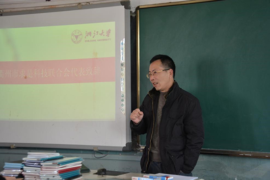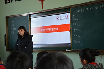 莲花初中校长阮礼安老师致辞中说到:“我当初的梦想是成为一名教师,如今我实现了自身的梦想,而同学们作为新时代的接班人,也要敢想敢做,为社会作出贡献,为实现目标奋斗!”詹家小学副校长分享了自己的感动感动于浙大师生一行放弃自己寒假休息时间来到偏远的龙游乡村进行公益实践,感动于衢州市求是科技联合会的浙大校友们一年多来利用“求是课堂”平台对乡村教育做出的贡献。