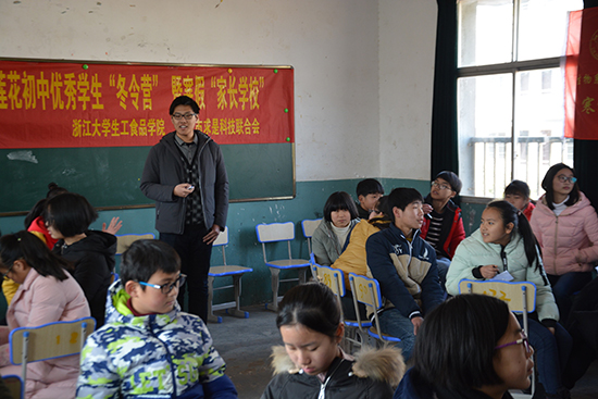2月5日-6日,浙江大学生工食品学院寒假实践团师生一行11人赴衢州乡村中小学开展公益助学活动。实践团分别在衢江莲花初中和龙游詹家小学开展“冬令营”,帮助农村学子拓宽视野、提振信心、提高素质,丰富寒假生活,为乡村振兴贡献浙大学子的青春力量。该项公益实践也是衢州市求是科技联合会“求是课堂”寒假专项活动。