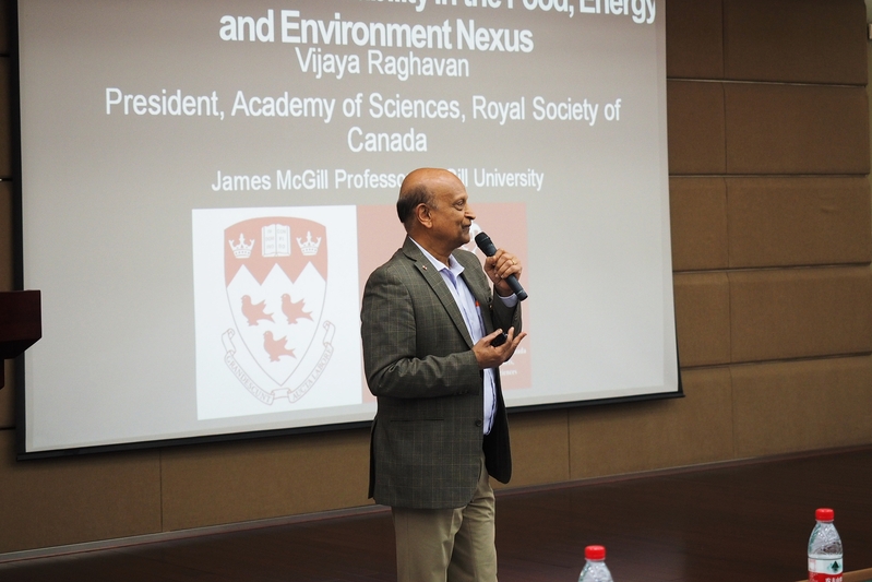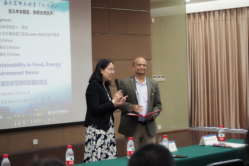 529日,加拿大皇家学会科学院院长Vijaya G. S. Raghavan做客第95期海外名师大讲堂,在紫金港校区为师生们带来主题为《食物能源环境系统可持续发展的挑战》的精彩讲座。聆听讲座的师生共150余人,会场座无虚席。