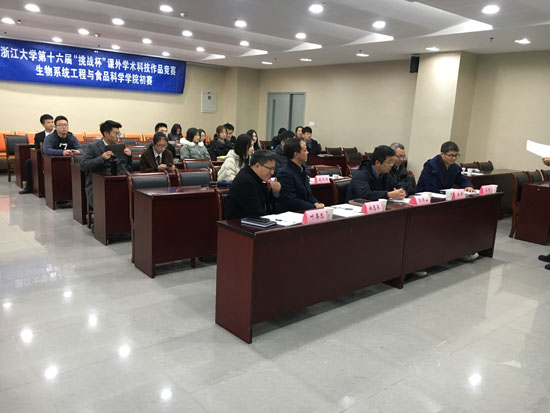 12月5日上午,生工食品学院举行第十六届挑战杯院级选拔赛。学院副院长徐惠荣老师,生工系郭希山老师、叶尊忠老师,食品系张辉老师,实验中心李阳老师出席并担任评委,校团委科技口挂职团干赵文俊和刘妍秋莅临指导,学院团委张云飞和梅玫老师老师参加。