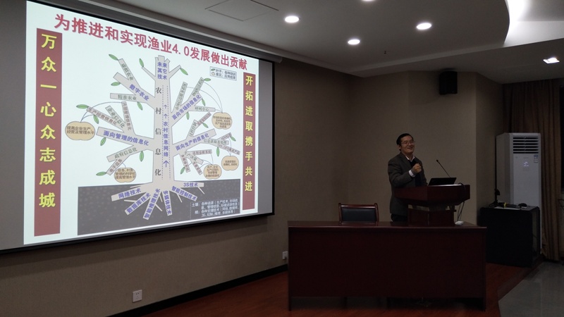 农业农村部水产养殖物联网技术创新团队领衔、中国农业大学李道亮教授作了“渔业4.0技术及进展”的精彩报告,从资源节约、产出高校、环境友好、产品安全等方面详细介绍了渔业产业所面临的装备化、网络化、智能化、无人化,养殖环境空间信息处理的自动化、定量化、实时化技术,养殖环境生态监测、预警、决策信息分布与应用的网络化,详细介绍了渔业产业从水产1.0到渔业4.0的基本过程,信息技术高度集成等渔业4.0的基本特征,以及空天地一体化的渔业资源、环境、生态监测预警体系,无人化的水产养殖生产体系,突破水产品冷链物流与质量安全控制技术等智能化的水产品加工、物流体系等渔业4.0的主要技术研究领域及进展,并介绍了农业农村部水产养殖物联网技术创新团队在攻克水产养殖精准测控关键技术和大规模产业应用等方面所作出工作与成就。