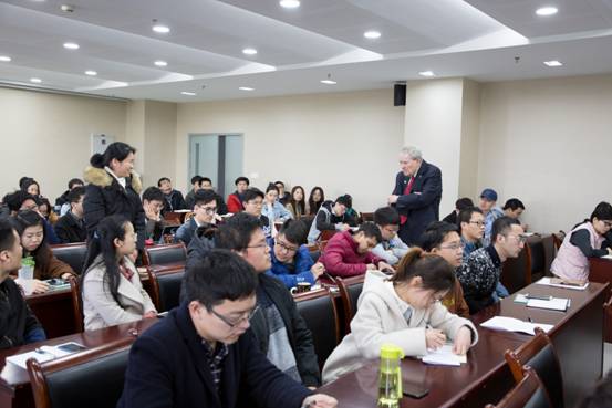 Norman R. Scott院士告诉大家正是因为具有如此多般的挑战,才鼓动着我们不断前进的脚步。在报告中,具体提出了四大任务说明“未来几十年,粮食和农业可能面临的最大挑战是什么?”、“可预见的最大的粮食和农业科学发展机会是什么?”、“存在哪些基本知识缺口限制了科学家利用机遇应对这些挑战的能力?”以及“应推进和支持哪些研究领域,以填补这些知识空白?”在场的师生们翘首认真聆听,时而频频点头,时而笑声一片。