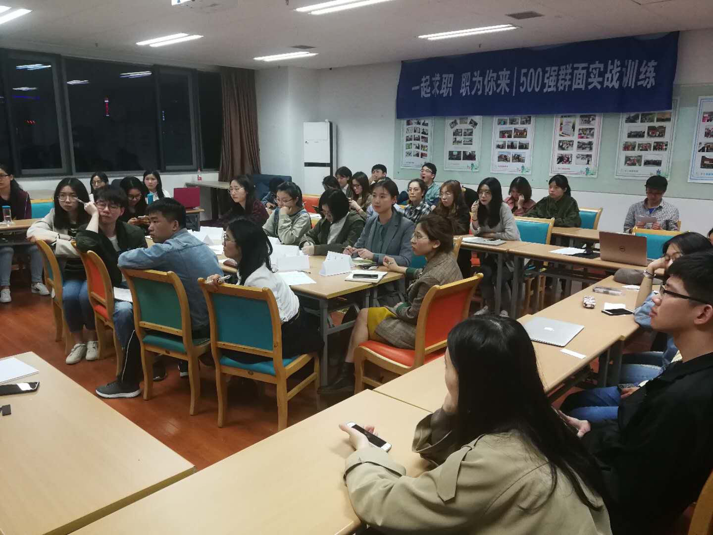 2019年4月9日晚,学院在D422举行了一场面试培训,该活动是学院就业指导系列活动之一,本次活动主要聚焦面试基本规则介绍和准备以及500强群面模拟训练。此次模拟训练邀请了长期致力于职业生涯发展规划、职业能力提升工作的“一起求职”联合创始人、杭州城市经理武罗缘老师团队担任培训师,研究生辅导员张云飞协助。学院近40余位研究生参加。