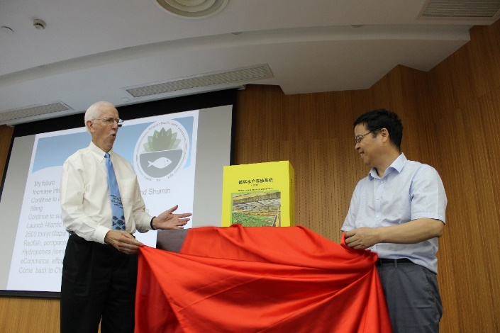 美国康奈尔大学生物与环境工程系教授Michael B. Timmons博士、康奈尔大学生物与环境工程系特设教授Gary Alan Ledford博士应邀出席分享会并做主题报告。Timmons教授的报告为《美国循环水养殖的发展与现状》。报告形式新颖,气氛活跃,对循环水的养殖发展理念娓娓道来,令在场参会者热情高涨,反响强烈。Gary Alan Ledford教授做了《从水产养殖到鱼菜共生——都是关于水》的主题报告,介绍了美国从循环水养殖到RASponics的发展都是源于对水资源的节约和可持续利用。