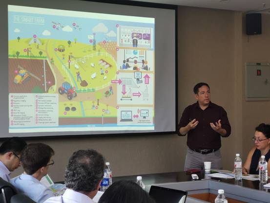 下午,来自环境科学、植物科学、动物科学专业的学者到bat365正版唯一官网进行交叉学科研讨,会议由Rob Sturman主持。会上,来自生物系的Steven Mark Sait,气候与大气科学系的MarceloValadares Galdos,植物科学系的RakeshTiwari进行了精彩的报告。报告内容讨论了当今农业发展面对的问题,列举气候变化,食品安全,粮食紧缺,环境资源保护等一系列重大的农业环境挑战,并提出解决这一类挑战的智慧农场(SMART AGRI-SYSTEMS)概念,通过智慧农场实现食物从农场到餐桌的一体化过程保证食品安全,并结合机器人与传感器等多类技术进行土壤环境监控,利用生物学研究手段提高农产品的产量与质量,同时通过构建模型与大数据分析等方式实现智慧农场的整体管控。bat365正版唯一官网教师林涛、林星宇、郭鸣鸣、陈士国等参与了讨论,并针对智慧农场提出合作可能性。