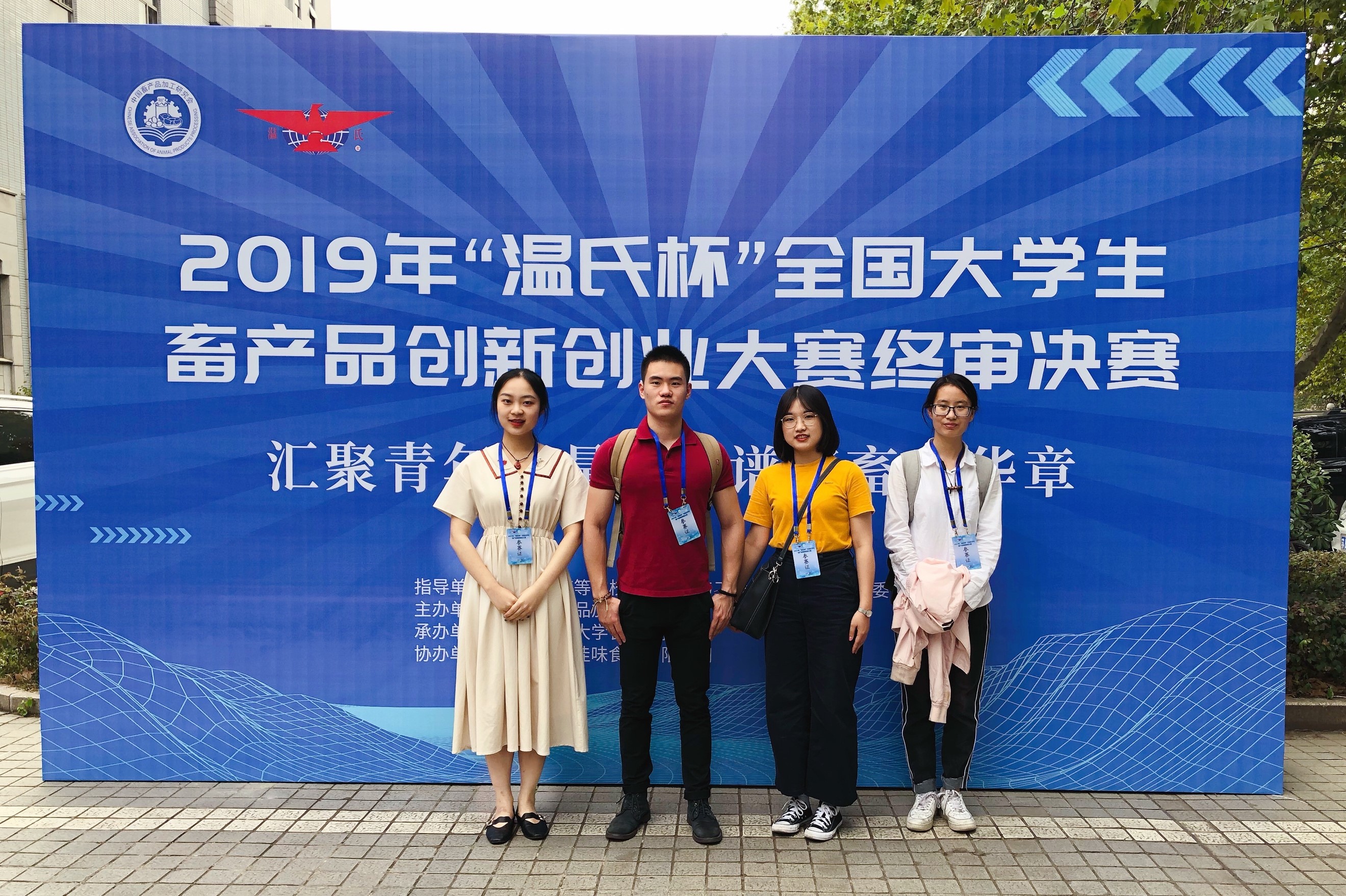 2019年“温氏杯”全国大学生畜产品创新创业大赛于2019年9月25日在南京农业大学举行,本次大赛有来自山东农业大学、西北农林科技大学、江南大学、福州大学、中国海洋大学等多所高校的40支代表队参赛。bat365正版唯一官网派出的参赛团队由罗自生教授指导,食品科学与工程16级章晓晨、董盈盈、俞笑梅和17级吴晓涵同学组成。