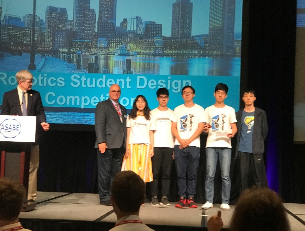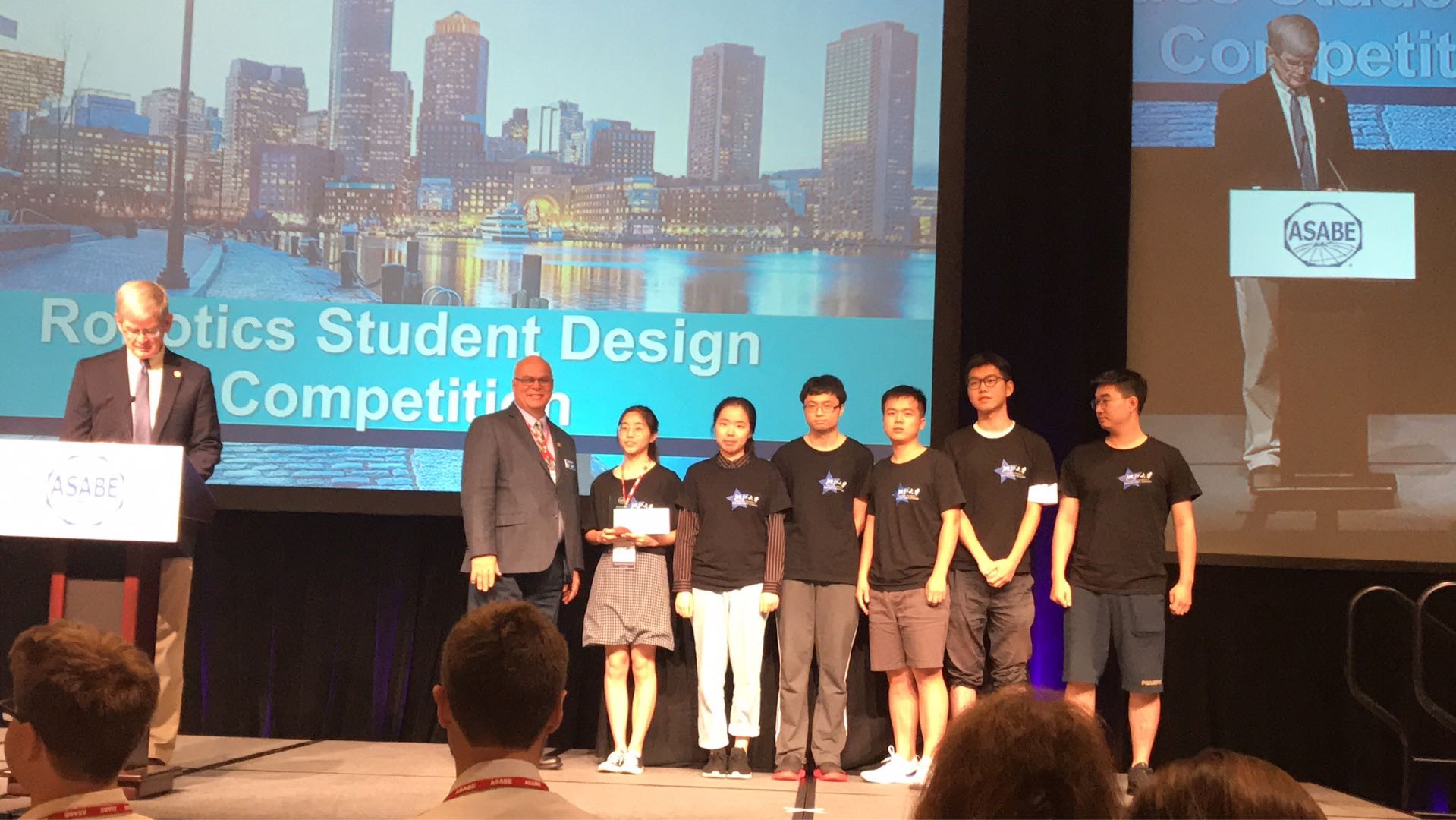 201977-10日,bat365正版唯一官网派出三支本科生队伍和一支研究生队伍参加了在美国马萨诸塞州波士顿市举行的美国农业与生物工程师协会(ASABEAmericanSociety of Agricultural & Biological Engineers)年会第十三届国际大学生机器人设计竞赛,喜获本科生组季军和研究生组季军等成绩。