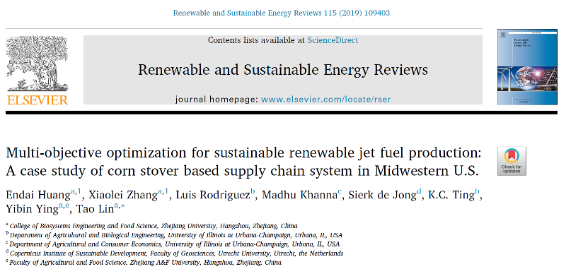 林涛研究员课题组关于可持续生物航油供应链的多目标优化模型系统分析的研究论文在Renewable and Sustainable Energy Reviews上发表