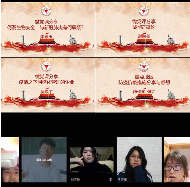 【序言】这是一个不平凡的春天,这是一个特殊的新学期。新型冠状肺炎病毒的席卷改变了每个人的生活节奏和社会步调,全民战“疫”已然打响。当前,疫情形势依然严峻复杂,防控正处在最吃劲的关键阶段。在疫情防控的关键时期,为学习贯彻好习近平总书记重要指示精神和党中央、教育部及学校关于疫情防控的工作部署,巩固“不忘初心、牢记使命”主题教育成果,明确“离校不离教、停课不停学”,生工食品学院各学生党支部积极响应号召,依托网络平台开展了线上党员大会。通过线上主题学习,强化广大学生党员在特殊时期的责任意识、担当意识、奉献意识,通过线上主题党日活动,密切学生党员的相互联系,增强战胜疫情的坚定信心和坚强决心,发挥好广大党员同志的先锋模范作用,以“咬定青山不放松”的韧劲、“不破楼兰终不还”的拼劲参与到战“疫”行动中,共同打赢全民疫情防控狙击战!今日推出生工系本科生党支部、农业生物环境工程研究所研究生党支部的组织生活剪影。