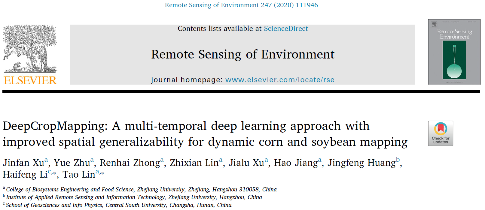 课题组在读硕士生徐金凡为论文第一作者。论文通讯作者为浙江大学生工食品学院林涛研究员和中南大学地球科学与信息物理学院李海峰教授。合作单位包括浙江大学农业遥感与信息技术应用研究所和中南大学地球科学与信息物理学院。本研究受到国家自然科学基金和浙江大学的资助。