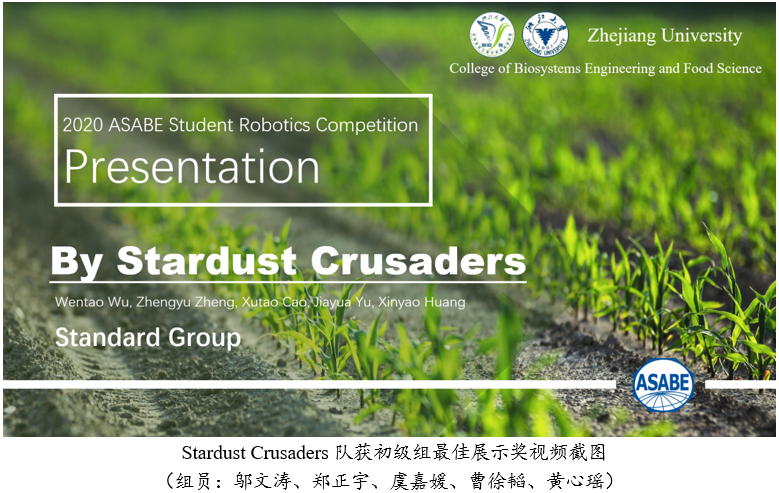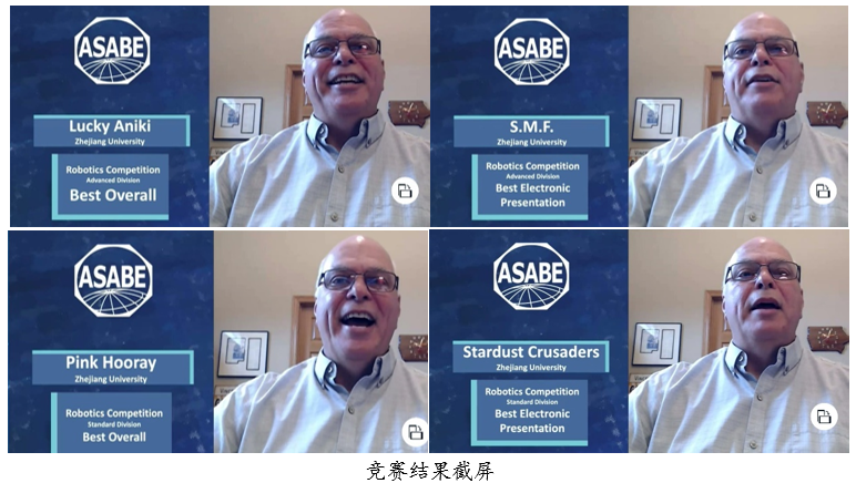 学院本科生喜获2020第14届ASABE国际大学生机器人设计竞赛四大奖项